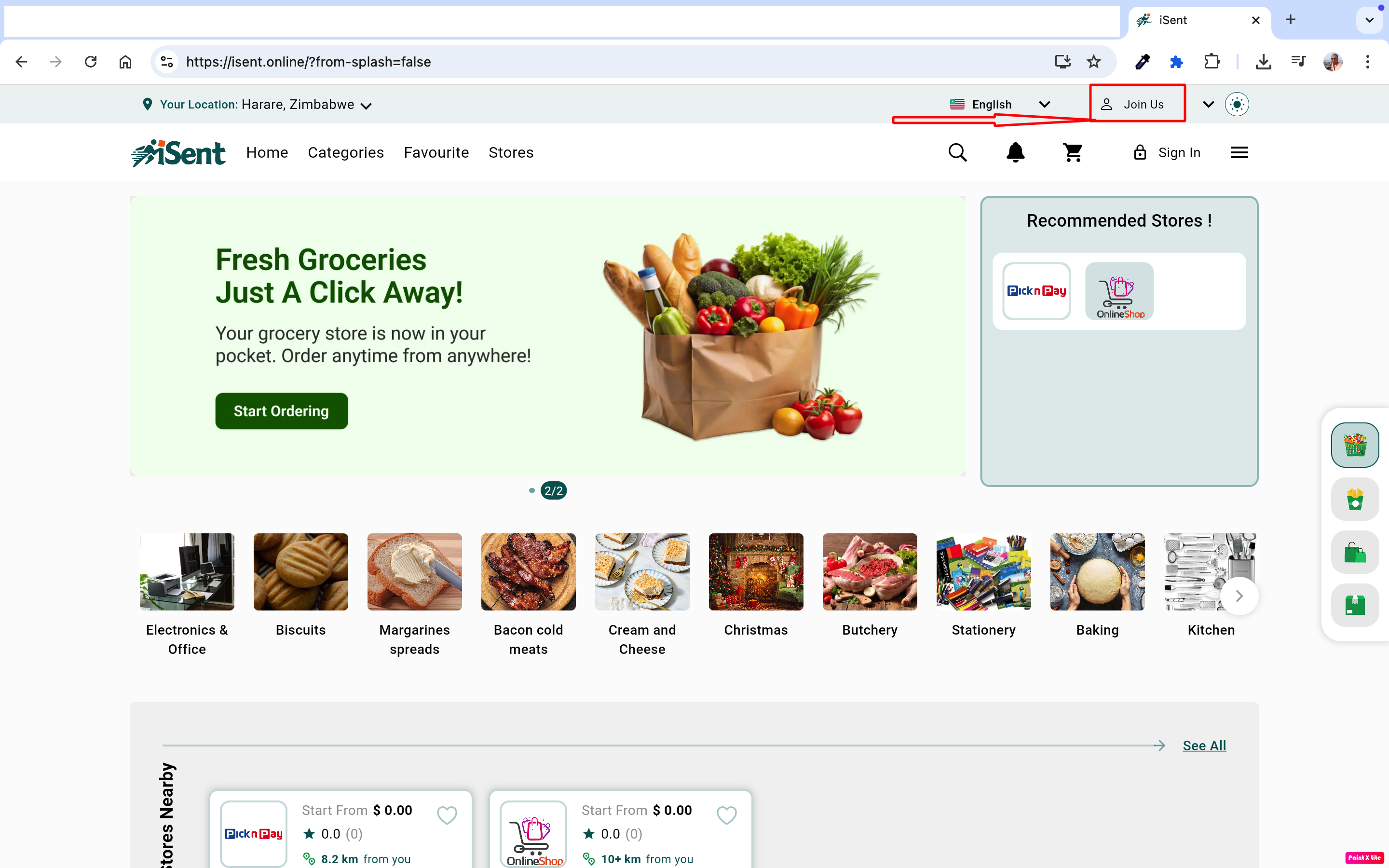 1. Visit https://isent.online/ and click on the “Join us” button.